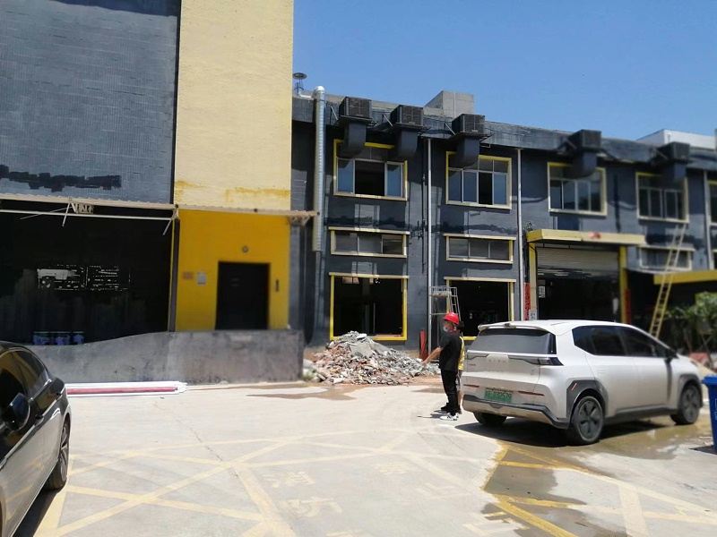 深圳市花儿朵朵央厨食品供应链有限公司约2000平方厂房外墙真石漆翻新项目于2022年5月宝俊涂装施工队伍正式进场开始施工,以下是施工图片: