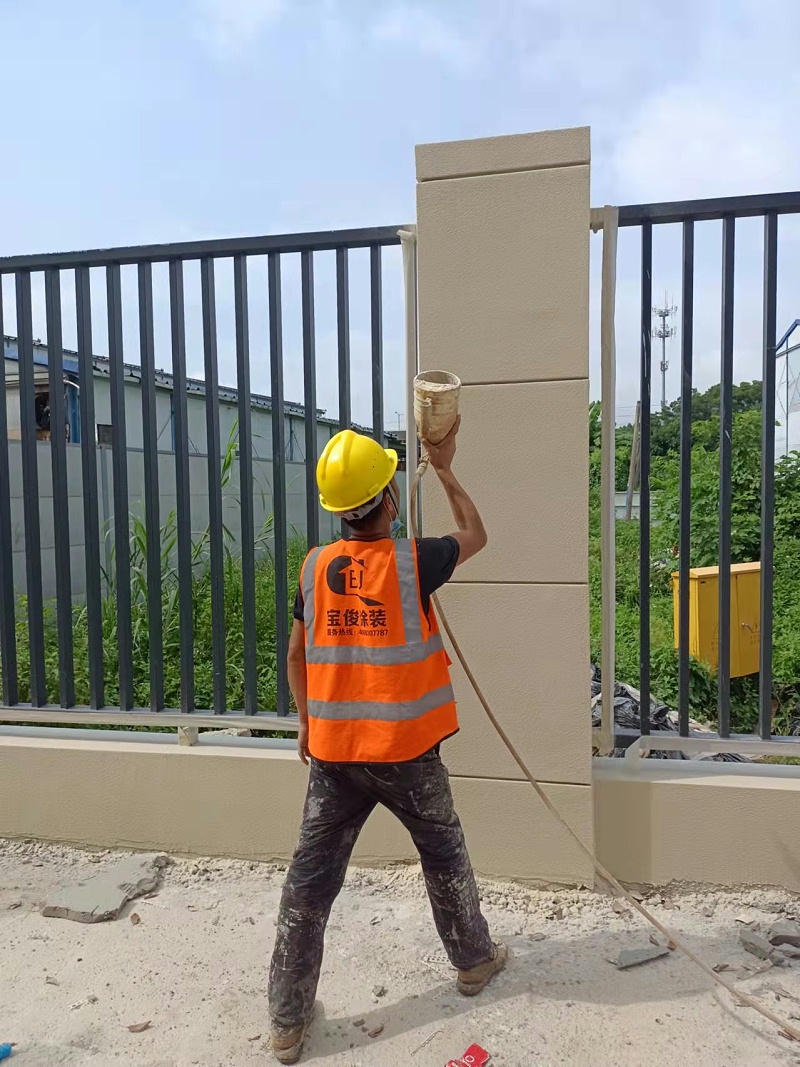 广州黄埔区火村融资四期学校围墙外墙真石漆项目