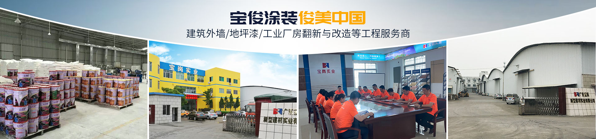 广东宝俊涂装工程有限公司隶属于广东宝岗新型建材实业有限公司,创立于2008年,经过多年的努力耕耘现已成为集研发、生产、销售、施工一体化的服务公司。公司通过严谨高效的管理先后获得:“国家高新技术企业”、“建筑涂装企业资质证书”、“ISO9001国际质量管理体系认证”、“ISO14001国际环境管理体系认证”、“安全生产标准化企业”、“3A级信用企业认证”、“中国绿色环保产品”、“重合同守信用单位”等多项荣誉称号。质优健康的产品,高效贴心的服务深受广大用户的信赖与推崇。